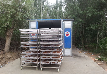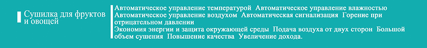 В сушилке для фруктов и овощей серии 5Н осуществляется термическая проводимость и влаго-теплообмен посредством принудительной вентиляции и циркуляции горячего воздуха. По сравнению с традиционными сушилками китайского производства наша сушилка имеет преимущества как большая плотность загрузки, экономия рабочих сил, экономия топлива, стабильность влажности и температуры, высокая степень автоматизации, несложная эксплуатация, сокращение времени сушения и т.д. В процессе сушения продукция равномерно нагреется, сушенный китайский финик имеет светлую окраску, на кожуре которого мало морщин, большая эластичность, маленькая разница по цвету дает возможность повышения сорта продукции, средней цены и увеличения экономической эффективности.